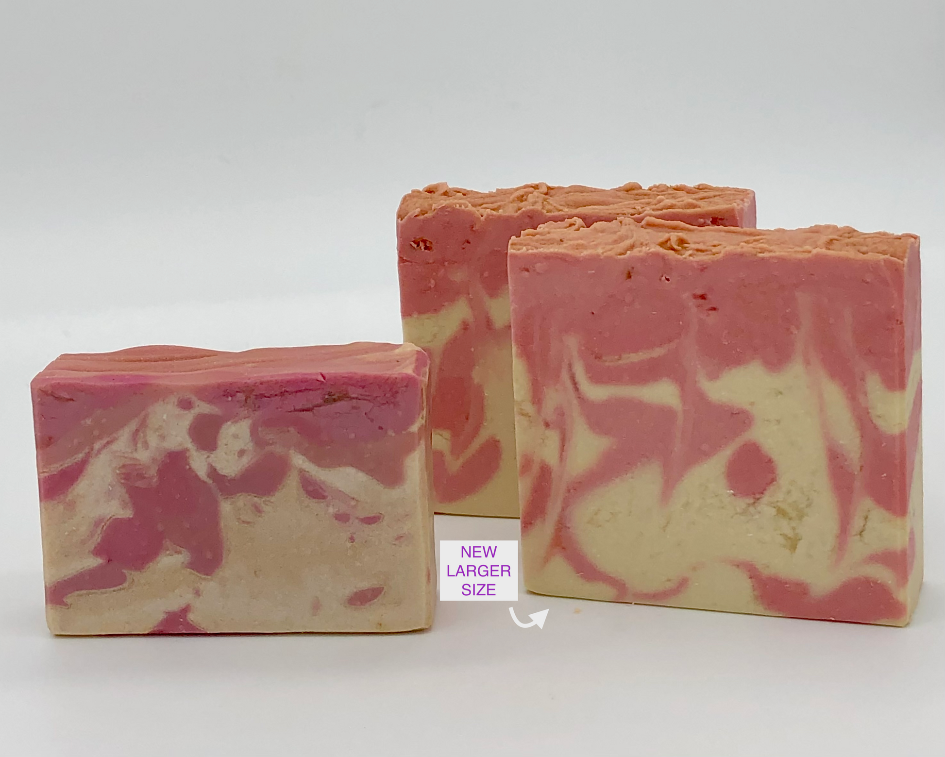 NEW LARGER BAR! Caress your senses and your body in luxurious Morning Rose Bar by LeiLovely. Freshly made in small batches with love, these beauties burst in skin pampering properties with ingredients like tussah silk, rosehip oil, mango butter, avocado oil, kaolin clay and more. Organic, natural goodness in each bar that smells simply fantastic! Turn your daily ritual into a lavish spa experience by indulging your senses and your skin with the soft petaled glow of Morning Rose today.